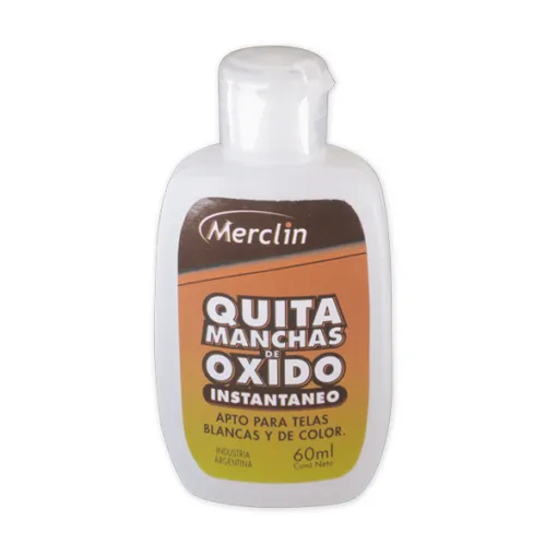 Merclin Quita Manchas Oxido es un poderoso limpiador que remueve manchas de óxido instantáneamente. Es apto para aplicar en telas blancas o de color.