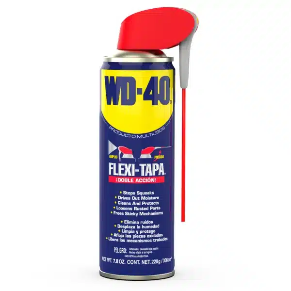 Las presentaciones de 155g y 311g vienen con la tradicional cánula para un disparo mas preciso. Pero WD-40® Multiuso Flexi-Tapa 220g posee una válvula de doble acción que permite 2 tipos de aplicaciones: amplia o precisa. La tecnología Flexi-Tapa evita la pérdida de la cánula ya que viene incorporada.